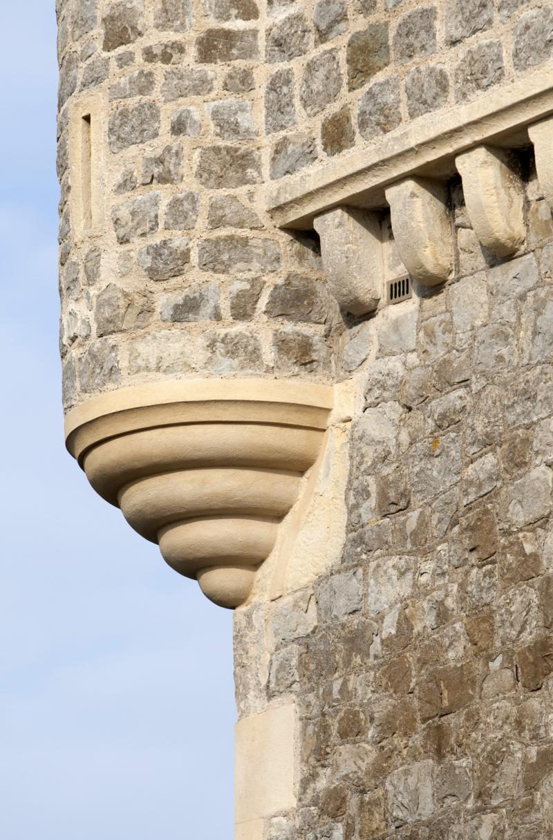 The new stonework package involved the design, supply and fixing of new Coombefield Whitbed ashlar, window and door dressings, copings and cantilevered turrets with knapped flints built between the stone dressings.